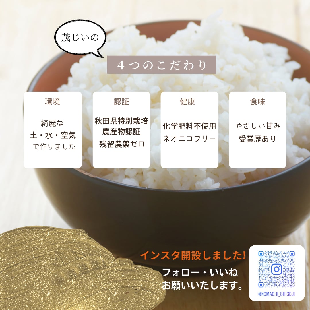 あきたこまち独特の粘り気が、どんな料理とも絶妙な相性を生み出し、食卓を彩ります。