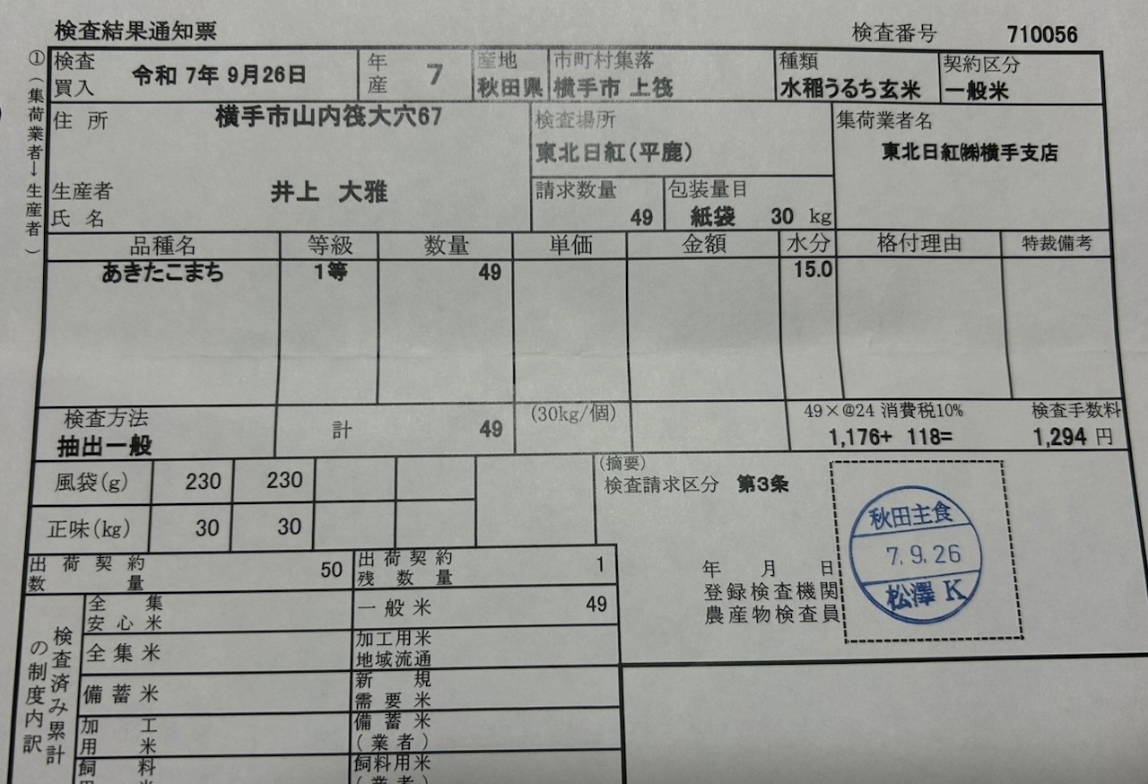 ・ネオニコチノイド系農薬(殺虫剤等)不使用の為、虫食等による黒い斑点付の米(斑点米)が混入している場合がございますが、人体に影響を及ぼすものではありませんのでご了承ください。